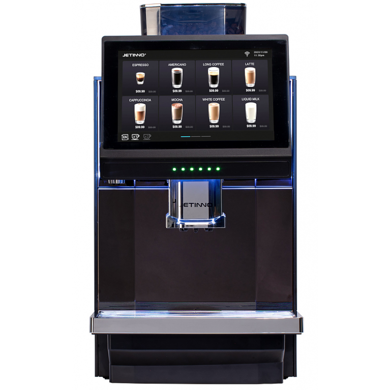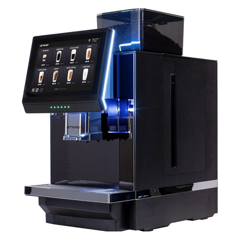 Jetinno JL36 - современная кофемашина с динамической амбиент-подсветкой экрана. Это одна из самых надежных, современных и функциональных кофемашин для офиса или кофейни. Благодаря встроенному клапану, перекрывающему молочную трубку, возможна автоматическая дистанционная промывка всей молочной системы. Наличие возможности дренажа и сброса жмыха делает эту машину одной из самых автономных в своем классе. Контейнер кофе и встроенный бак для воды имеют замок, препятствующий несанкционированному доступу.